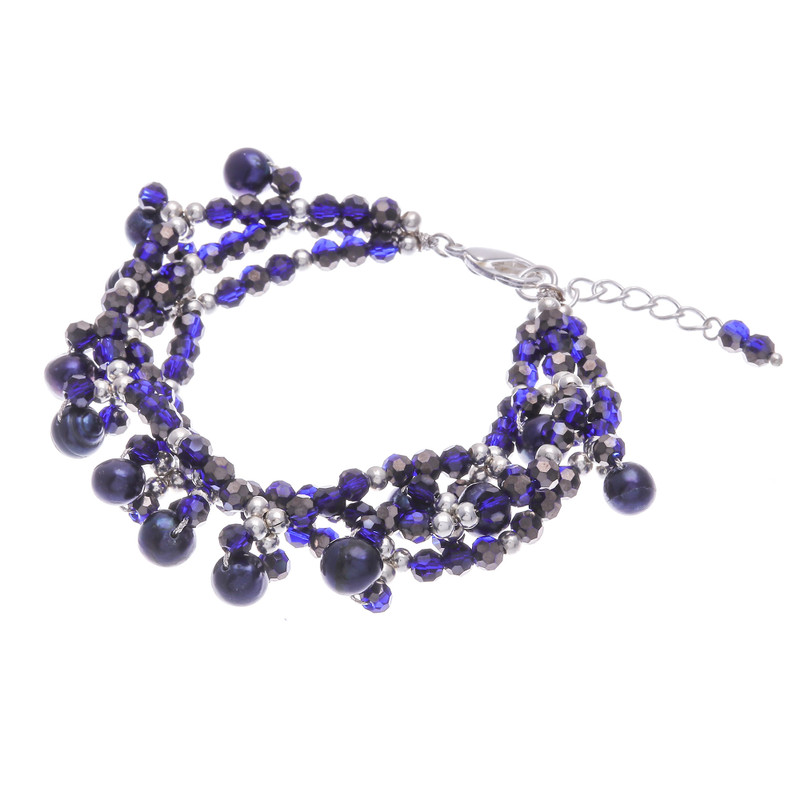Blue and metallic tones form a stunning creation by Thailand's Nareerat. This beaded bracelet features cultured pearls and silver-plated beads along a three-strand design. The vibrant palette allows it to be that tasteful choice that goes well on any occasion. It also has a convenient silver-plated extender and clasp.