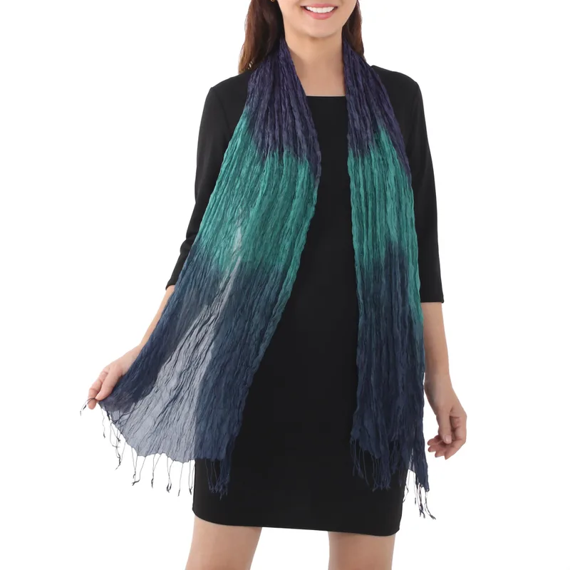 You can find our silk scarf 'Cool Transition' by Vinita in accessories categories such as Travel Friendly Scarves, Silk Scarves and Wrap Scarves. Enjoy exploring these sections for other Novica treasures.
