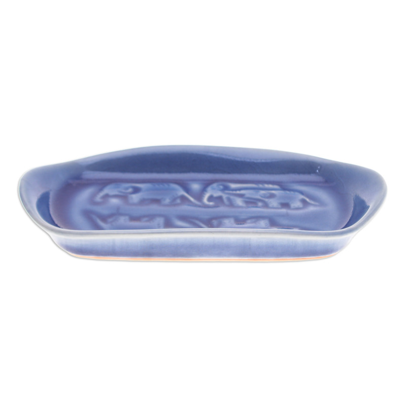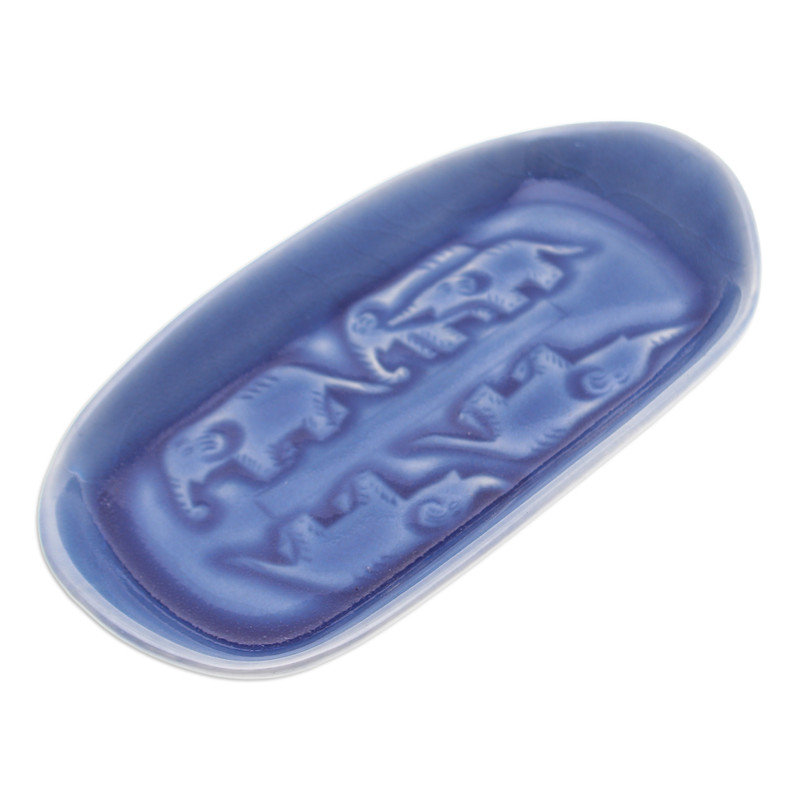 Backed by our 100% Happiness GuaranteeElevate your culinary presentations with this enchanting ceramic serving bowl adorned with delightful elephant motifs and a unique, crackled blue celadon glaze. Expertly handcrafted in Thailand, this practical and stylish accessory by Penpan is a canvas for creativity, perfect for serving appetizers and snacks. It can also be used as a salt and pepper tray, butter dish and more.