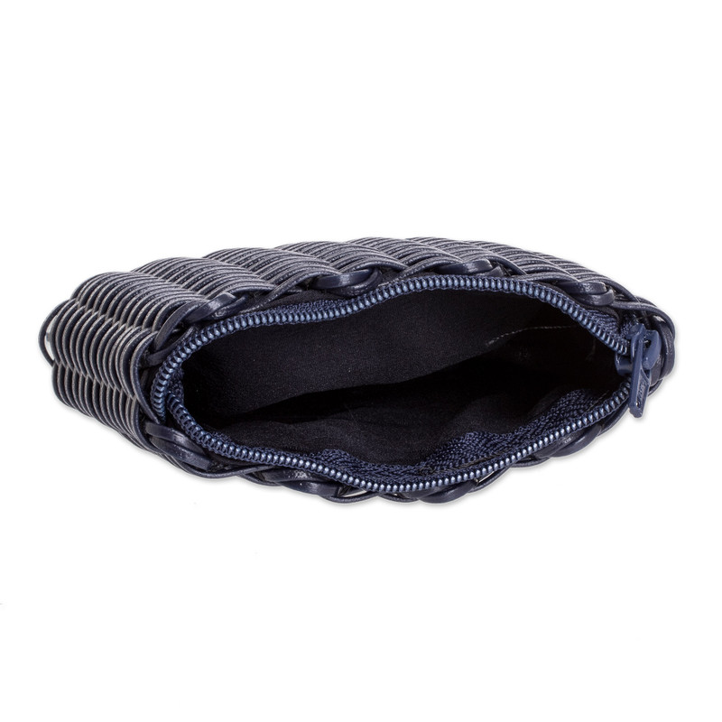 Backed by our 100% Happiness GuaranteeFashion accessories and sustainability can go hand in hand as proven by this wonderful coin purse in midnight blue hand-woven with a recycled vinyl cord by Claudia Hernandez in Guatemala. "I love this little bag, it is great for storing makeup and small documents but it also serves as a travel bag," Claudia says of this purse that features a cotton lining and a plastic zipper closure.