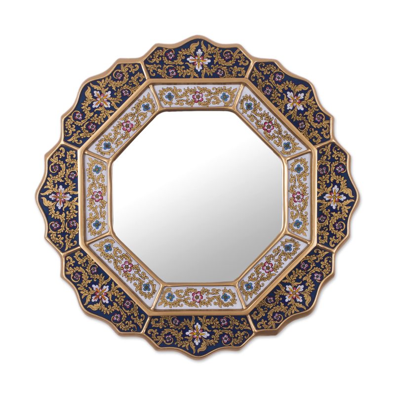 You can find our reverse painted glass mirror 'Azure Star' by Asunta Pelaez in wall decor categories such as Reverse Painted Glass Mirrors, Floral Mirrors, Glass Mirrors and Wood Mirrors. Enjoy exploring these sections for other Novica treasures.