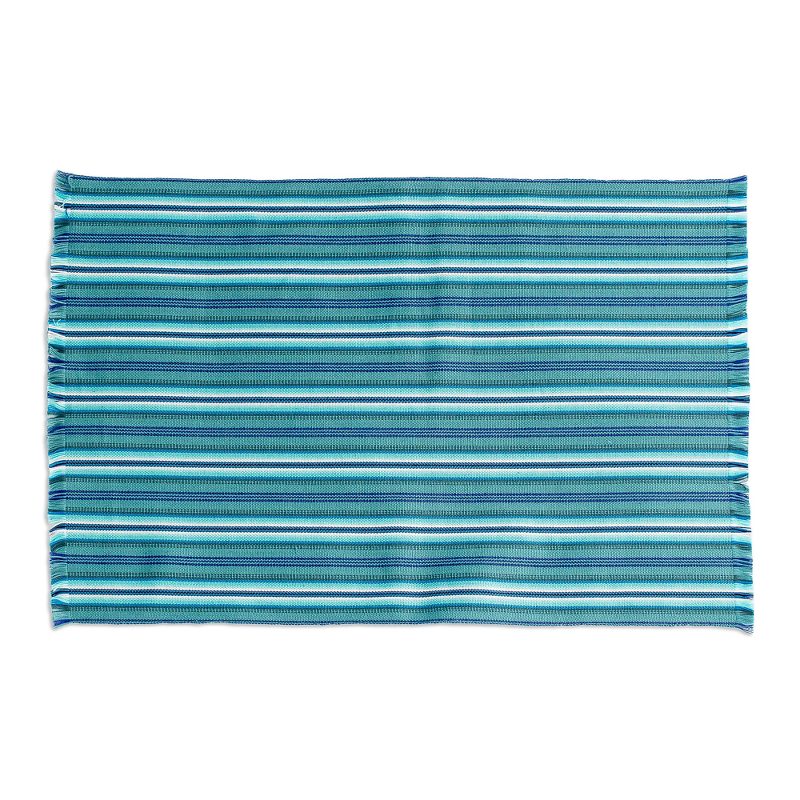 Backed by our 100% Happiness GuaranteeBeautiful stripes in cerulean, teal and lapis distinguish this napkin set from Eladio Chiroy in Guatemala. The six napkins are woven of cotton on a traditional pedal loom, and features fringe at both ends.