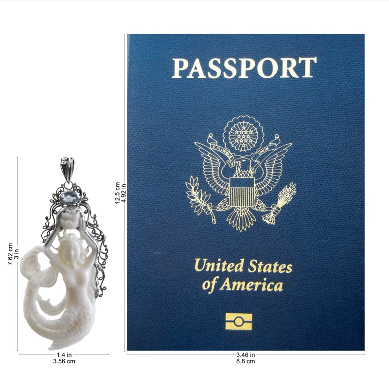 This exquisite piece is such a unique one of a kind piece of jewelry, i just love it. As with all the other pieces Ive gotten with blue topaz at Novica, the stone color is really light but still a beauty. A mermaid should really have a vibrant color stone in it, even if its just a crystal or simulated stone.