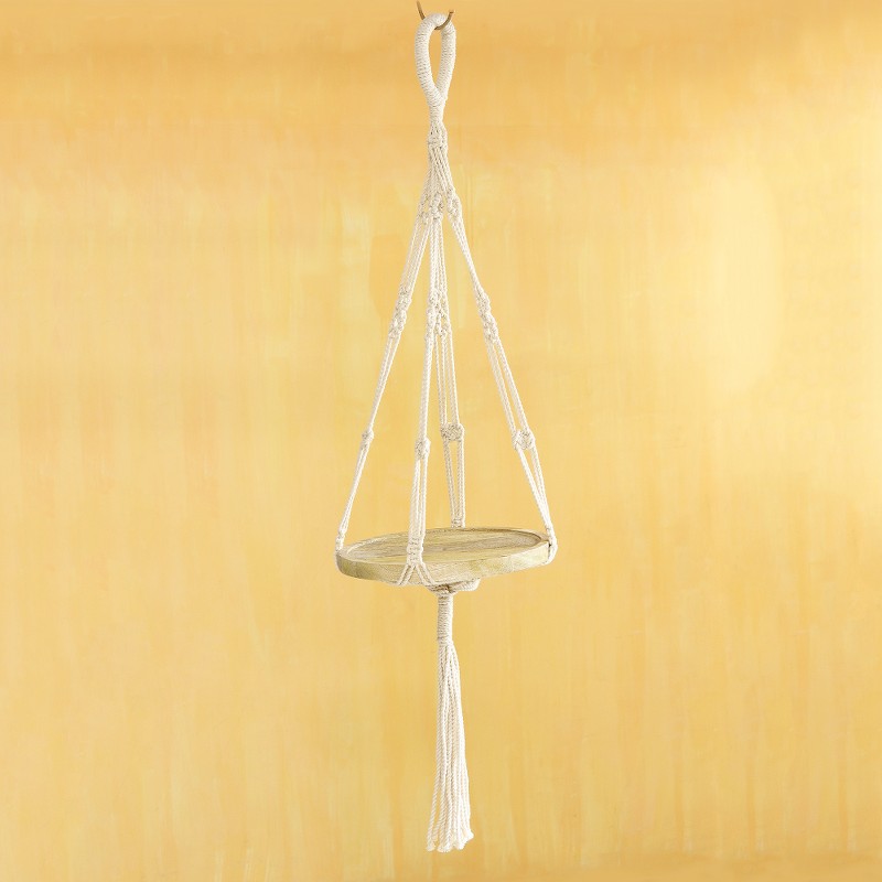 Add a bohemian accent to your home with this splendid little hanging shelf designed by India's Hardeep. The artisan suspends a mango wood shelf from durable cotton cords, which are hand knotted using macrame techniques. The cotton cord features a fun tassel and a convenient loop so you can hang the shelf with minimal fuss.