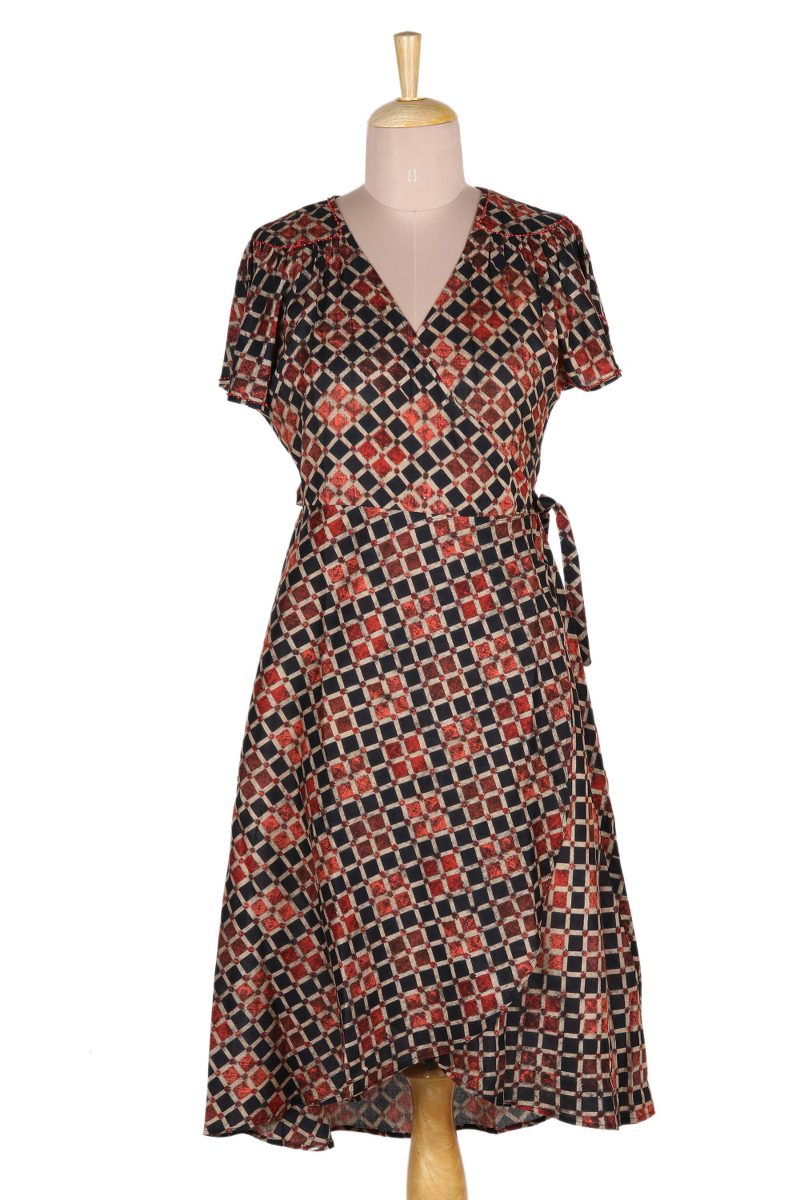 You can find our viscose wrap dress 'Creative Fusion' by Anchal Ahuja in clothing categories such as Geometric Dresses, Viscose Dresses and Wrap Dresses. Enjoy exploring these sections for other Novica treasures.