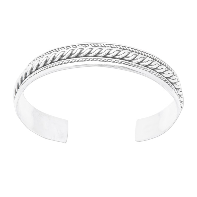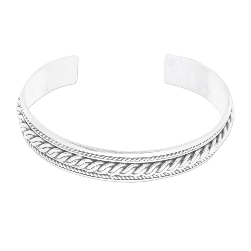 Backed by our 100% Happiness GuaranteeSturdy braids and classic details illustrate Bali's splendid arts and customs, all condensed in a glorious cuff bracelet presented by Komang Wijayana. Local artisans show their advanced skills in this sterling silver accessory, ornamenting its elegant structure with traditional accents and polishing every corner for a luxurious look.