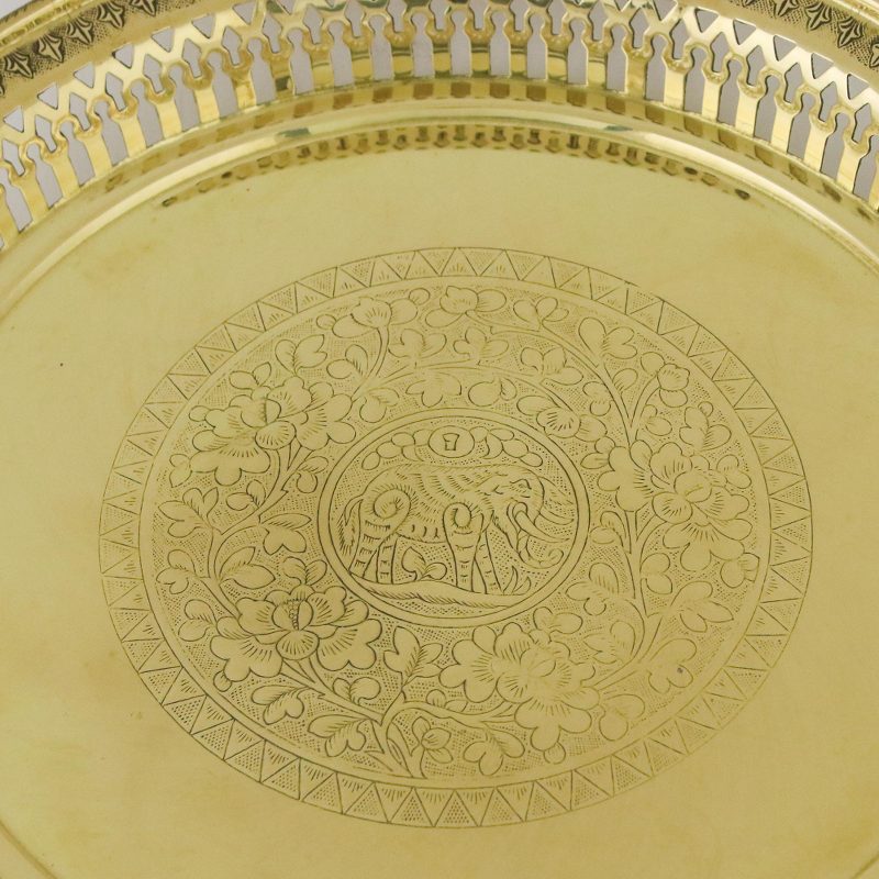 Backed by our 100% Happiness GuaranteeCharles fuses the concepts of traditional symbolism and modern decor in this beautiful tray. The deep brass catchall features an elephant at its center, a symbol of Thailand. Architectural-inspired openwork motifs surround the tray in a halo of gleaming light.