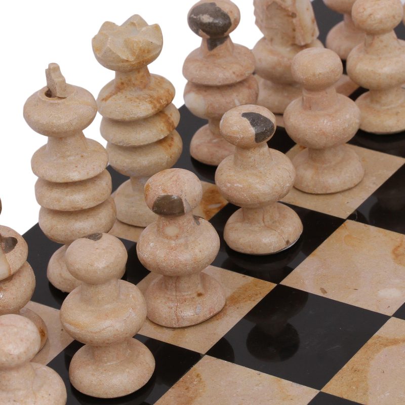The perfect home accessory for offering a cerebral challenge, this chess set from Mexico is presented by the Sierra Family. The artisans work with marble, diligently hand-carving each tile and chess piece to display natural hues of light and dark brown.