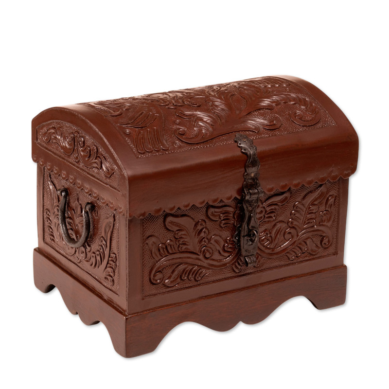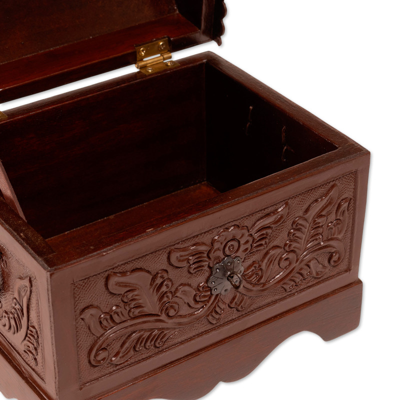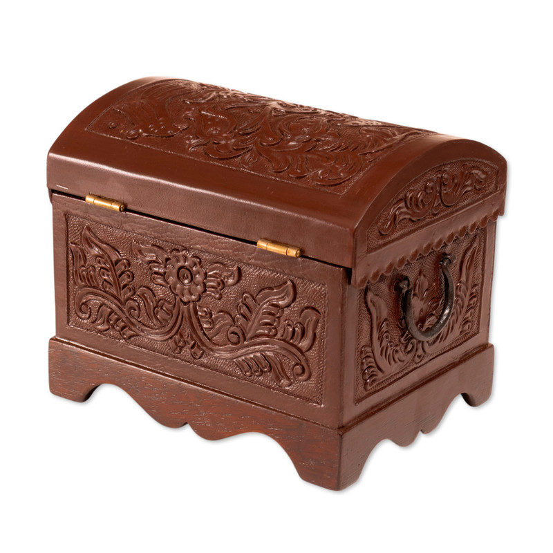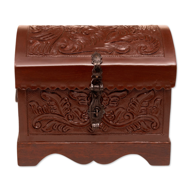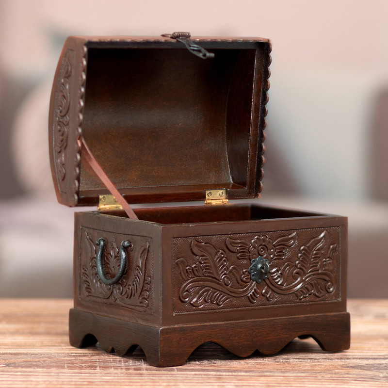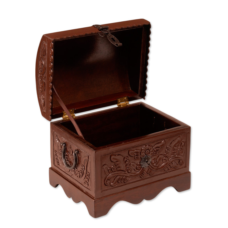 The perfect home accessory for storing small odds and ends, this decorative box will bring the enchantment of colonial handicraft to your home. Peruvian artisan Abel Rios crafts the box from brown leather over mohena wood, featuring nature-inspired and bird patterns that are carefully tooled by hand into the leather.