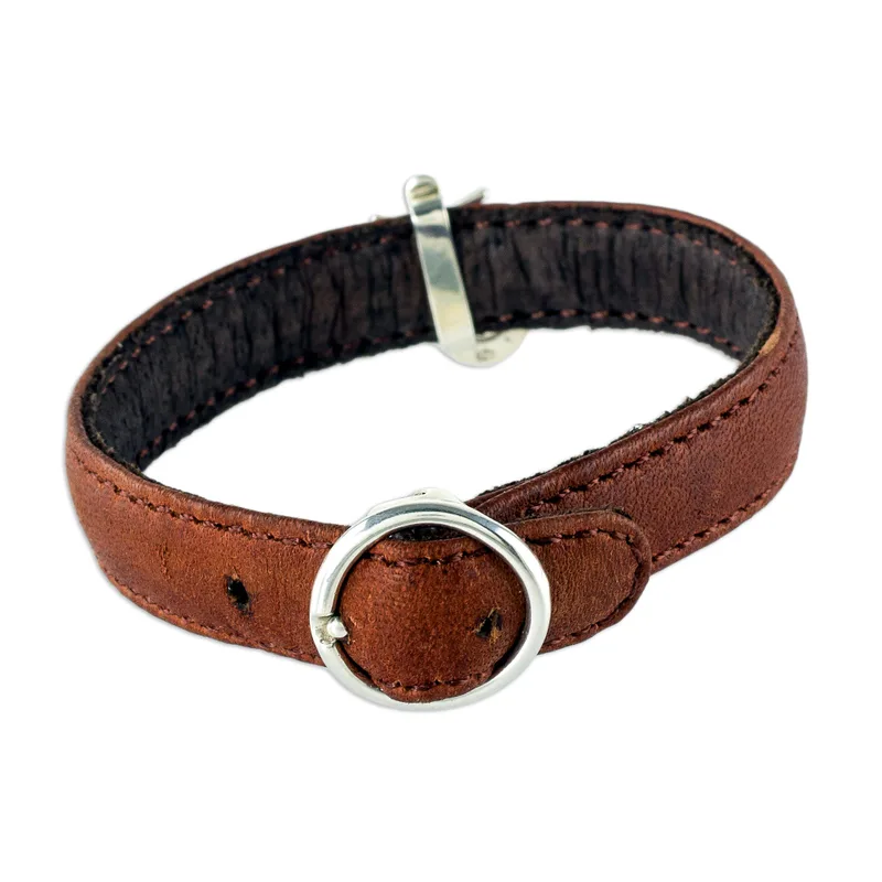 Backed by our 100% Happiness GuaranteeSupple leather in warm brown hosts a gleaming pendant in this original design from Nicte Migliozzi in Guatemala. The Brazilian-born artisan centers the bracelet with a polished sterling silver pendant of om, a sacred syllable and mantra in Hinduism and Buddhism. Express your spiritual side with this stylish bracelet.