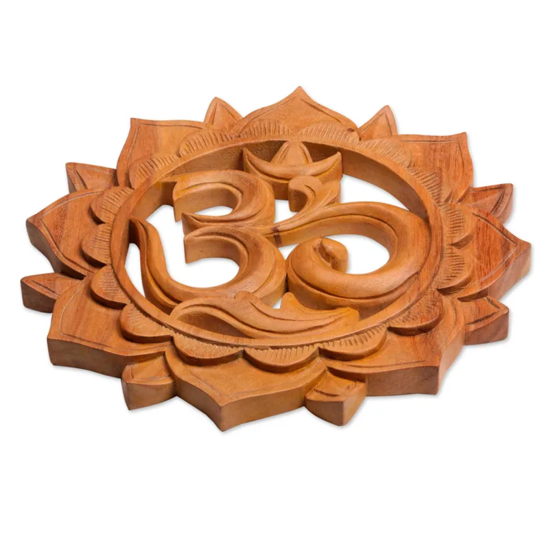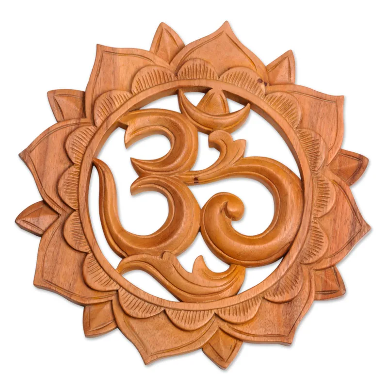 Backed by our 100% Happiness GuaranteeGlorious sunflower petals surround the elegantly-realized omkara symbol, a meditative mantra found in Hinduism and Buddhism that expresses a universal connection between all things. Balinese artisan Made Mulyani designs this relief panel, carving it by hand of local suar wood.