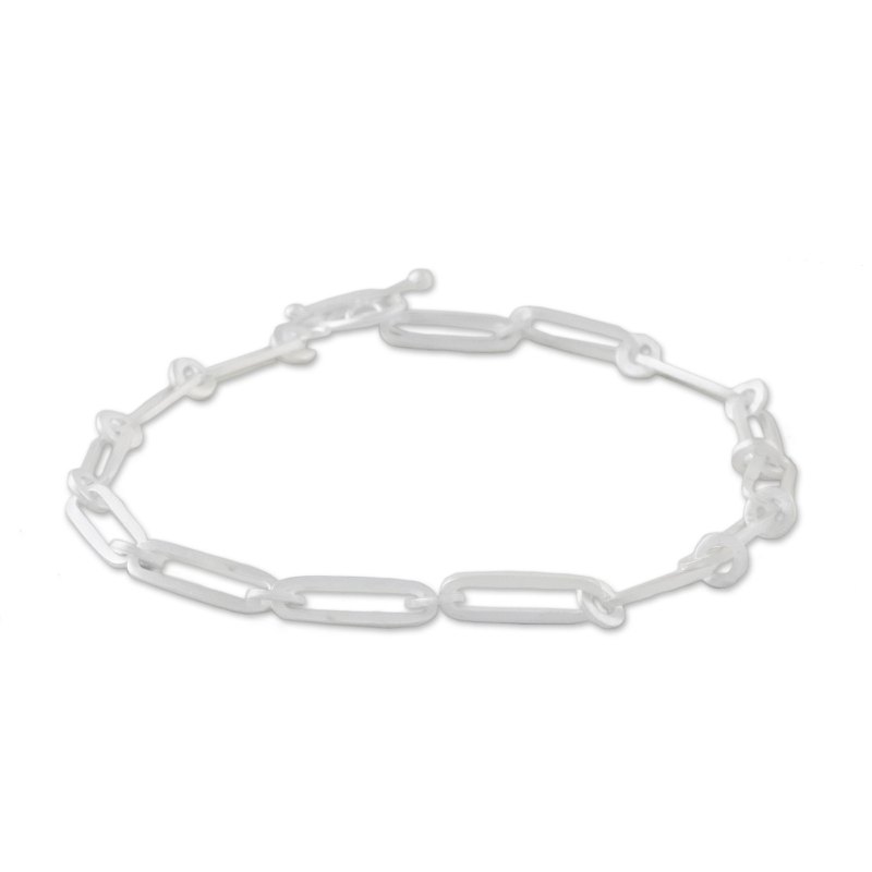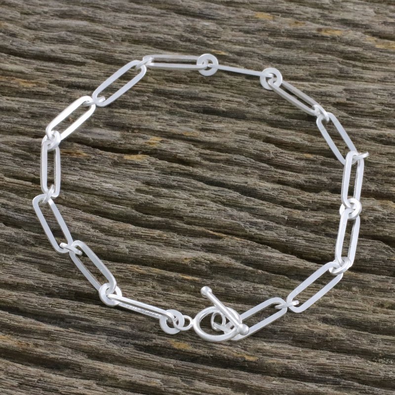 Petite lengths of sterling silver add a cool shine to this bracelet from Thailand. Sarote Lochoninunt designs and crafts the bracelet, linking ovals and small circles together, given a brushed-satin finish that shimmers in the light.