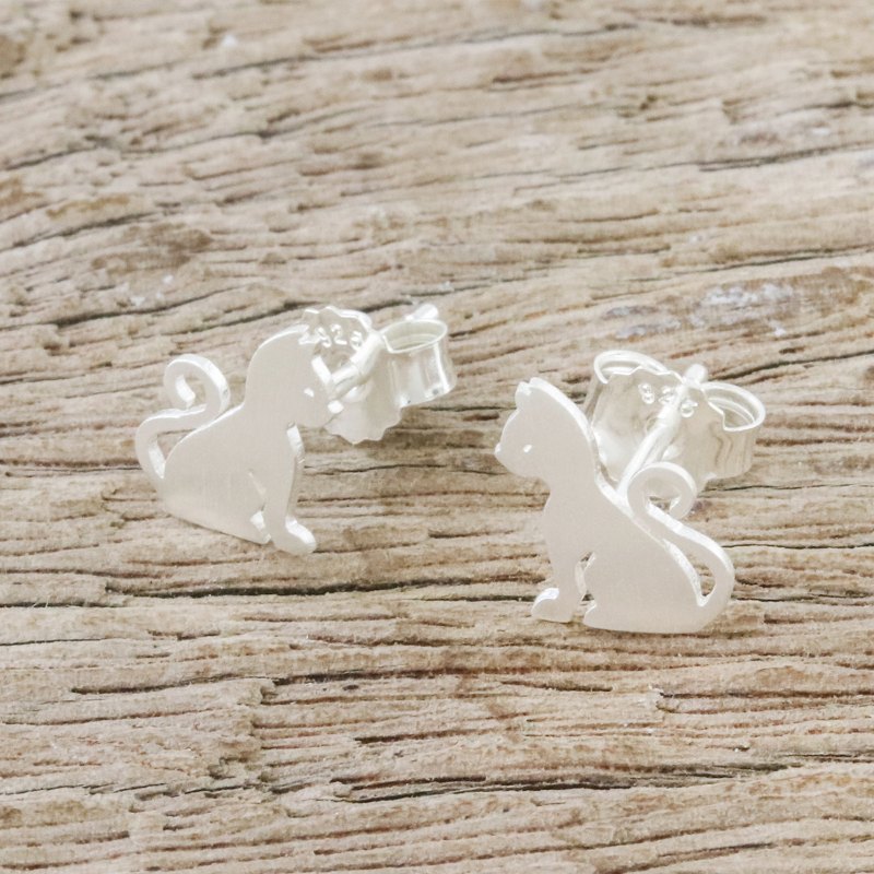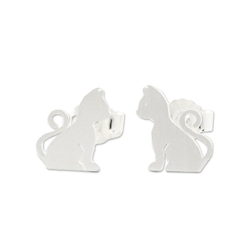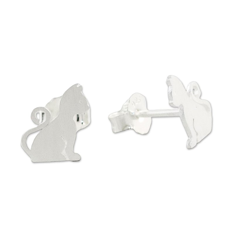 Who could possibly resist this inquisitive cat just waiting for attention, his tail curled into a question mark? Thai artisan Sarote Lochotinunt captures the charming feline in brushed sterling silver for a unique pair of stud earrings.