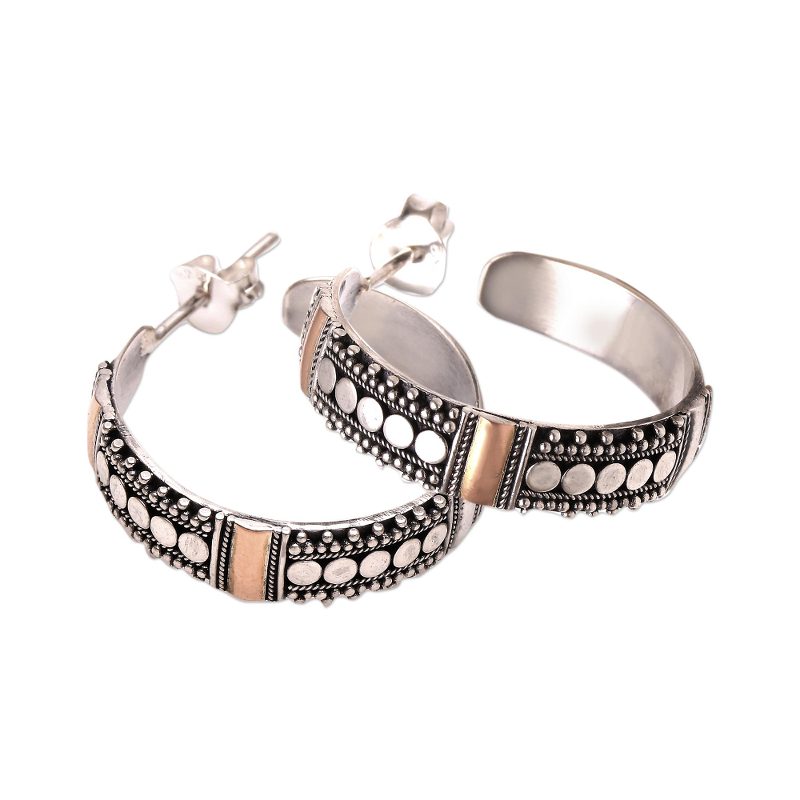 You can find our gold accented sterling silver half-hoop earrings 'Bun Loops' by Sukartini in jewelry categories such as Balinese Traditional Silver Earrings, No Stone Earrings, Silver Earrings, Sterling Silver Earrings and Gold Earrings. Enjoy exploring these sections for other Novica treasures.