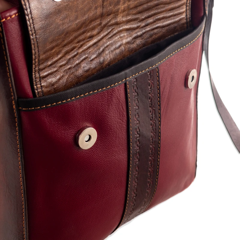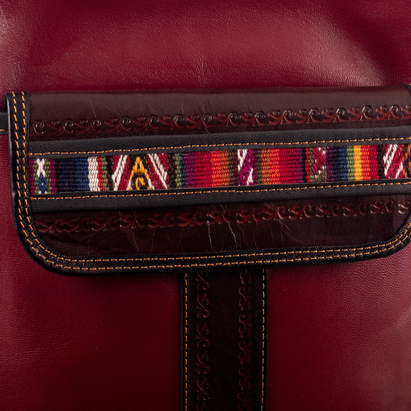 Backed by our 100% Happiness GuaranteeStep into a world of adventures fully prepared with this stunning and practical sling bag, a masterpiece by Peru's Kathiana Quispe meticulously crafted from supple burgundy leather. Its front flap pocket is secured by a magnetic snap closure and adorned with embossed designs, complemented by a vibrant handwoven wool accent featuring traditional Andean motifs. Unveil the main compartment's zippered closure to reveal a fully lined interior, complete with a zippered pocket for your essentials. Equipped with an adjustable strap and a handy back zippered pocket, this chic bag ensures comfort and style on every journey.