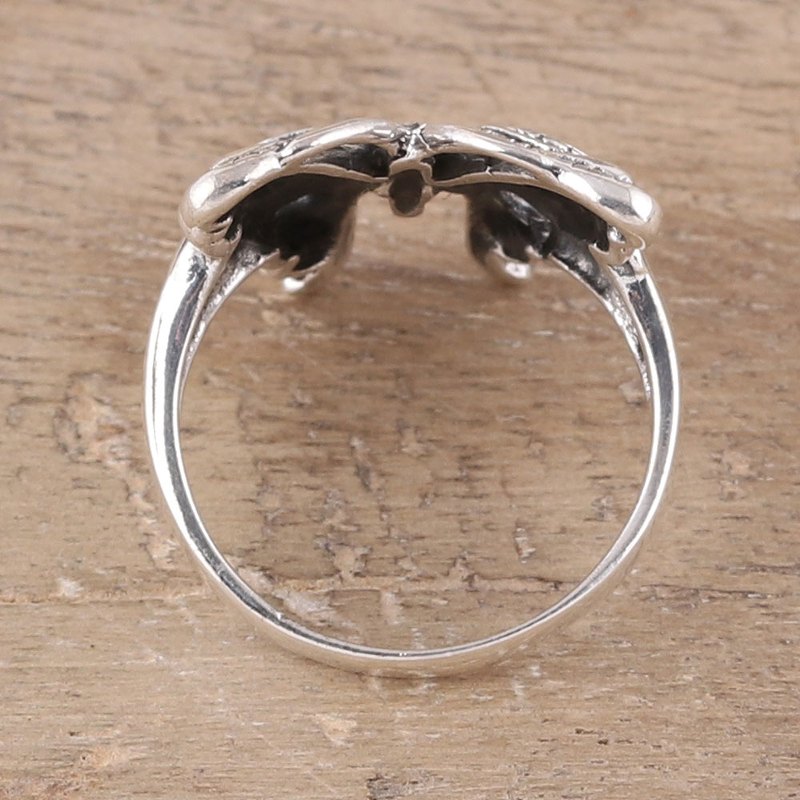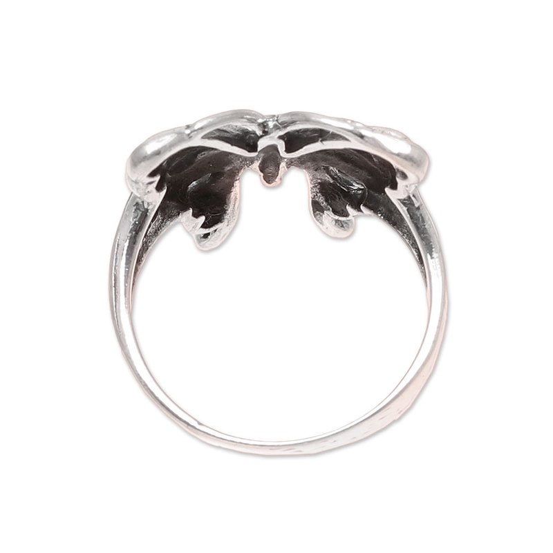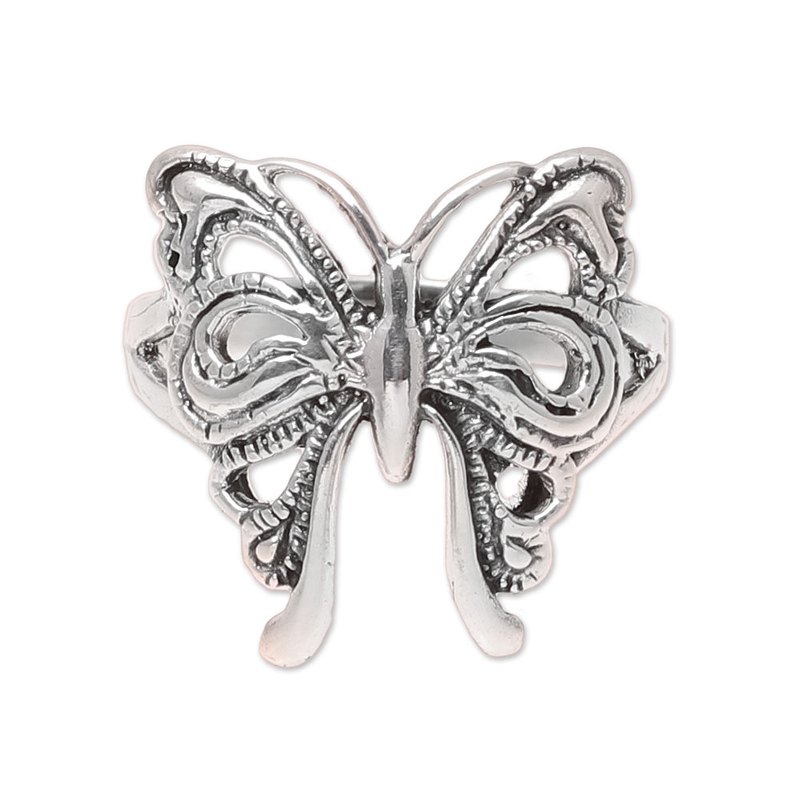 Backed by our 100% Happiness GuaranteeCrafted of sterling silver, a majestic butterfly hugs your finger with its wings. Indian artisan Bhavya Jain designs this band ring, detailed with a combination of finishes.