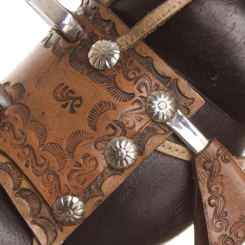 Wild and proud, a horse stands on its hind legs with equine elegance. Johnny Chamba carves the fantastic creature by hand, expertly sculpting cedar wood with vivid realism, which includes an ornate leather saddle.