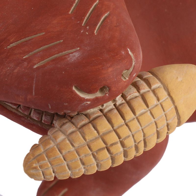 Backed by our 100% Happiness GuaranteeHolding an ear of corn in his teeth, this plump little dog replicates those found in shaft tombs throughout Western Mexico. Angel Cerón depicts the itzcuintli, a cheerful, barkless species prized by ancient man. Sculpted in clay as funerary offerings, they accompanied their masters in death to aid the soul in crossing rivers of blood along the road of the dead.