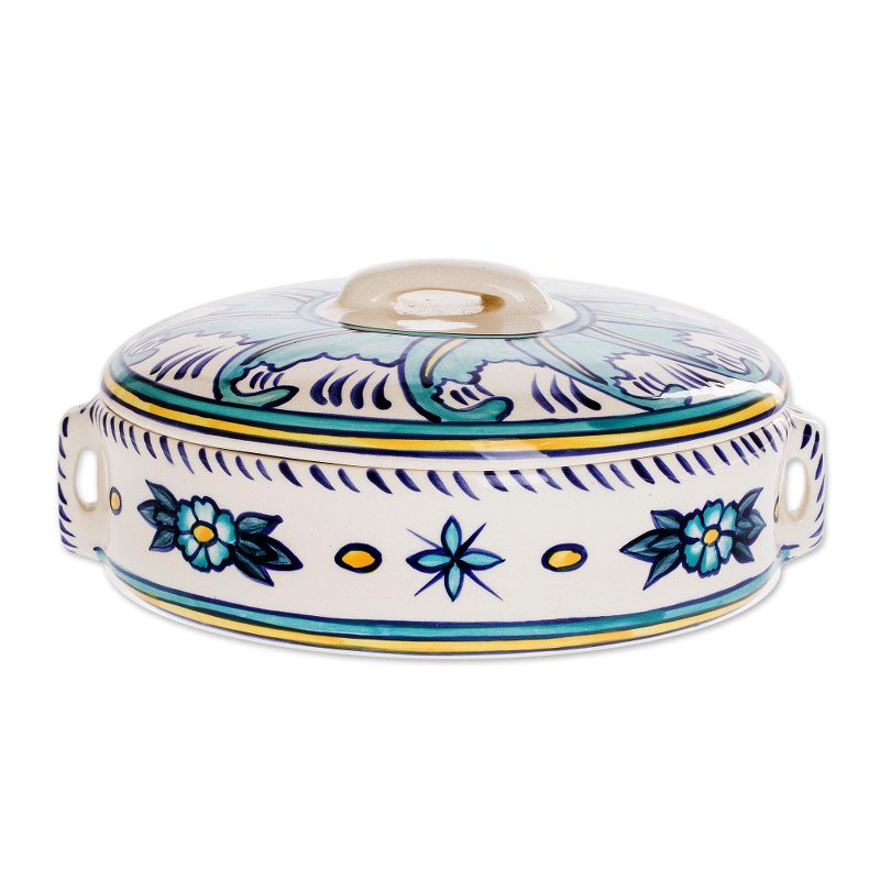 You can find our ceramic oval covered casserole 'Bermuda' by Lilyan Benecke in tableware categories such as Floral Serveware, Ceramic Serveware and Cassarole Dish Serveware. Enjoy exploring these sections for other Novica treasures.
