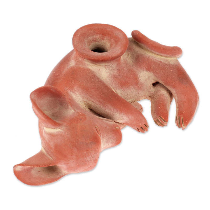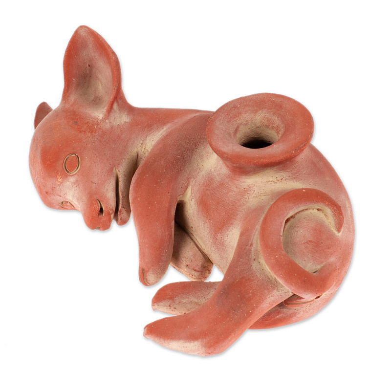 Backed by our 100% Happiness GuaranteeArtisans from the Angel Cerón Artisan Association replicate a ceramic vessel of a playful xoloitzcuintli pup, dated sometime between 200 - 600 A.D. It was originally found in a tumba de tiro burial place, so-called because it features interconnecting traits from diverse pre-Hispanic cultures from the Mexican states of Jalisco, Nayarit and Colima. They believed the xoloitzcuintli transported the souls of the dead to the underworld. Officially certified by the Mexican government to replicate pre-Hispanic art, the artisans craft the ceramic sculpture with faithful details.