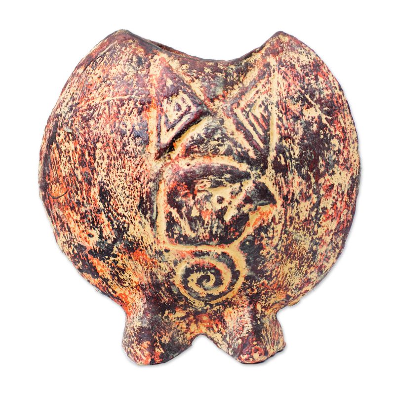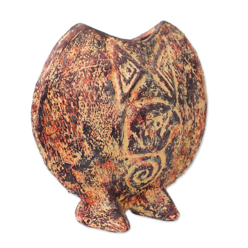 Backed by our 100% Happiness GuaranteeAn exercise in skill and patience, this vase featuring a striking eagle motif was handcrafted in the Ghana workshop of Samuel Lovi. Superior technique is evidenced in the fine texture and the fascinating weathered finish in distinctive daffodil and brown tones, resulting from careful preparation of the clay.