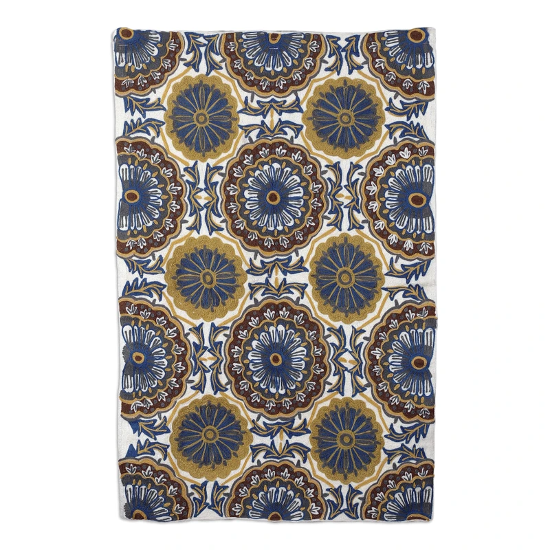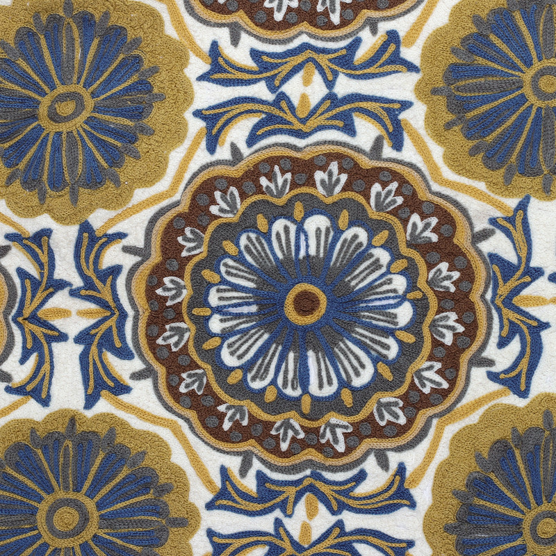 Backed by our 100% Happiness GuaranteeFeel the glory of the Kashmir traditions with this chain-stiched tapestry by designer Amit Moza and a talented Indian team. Wool threads in vanilla, yellow, brown and blue hues compose the floral details that decorate this sublime piece, adding a regal touch to the classic spring-inspired theme.