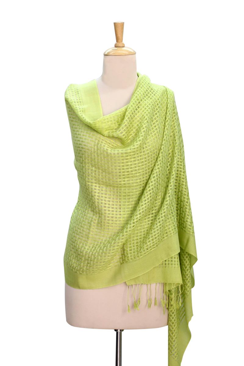 You can find our wool and silk shawl 'Chartreuse Bliss' by Syed Izaz Hussein in accessories categories such as Silk Shawls and Wool Shawls. Enjoy exploring these sections for other Novica treasures.