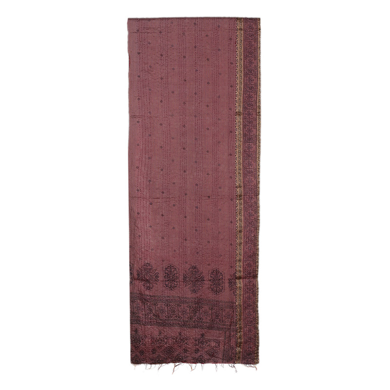 Backed by our 100% Happiness GuaranteeWear India's facets of luxury and sweetness through the colors that decorate this reversible scarf, presented by Rajveer. A talented team uses recycled silk textiles to create the piece, which is later enhanced by cotton Kantha embroidery details. The cherry side embellishes a floral pattern, whereas the dusty lilac side boasts a classic look.