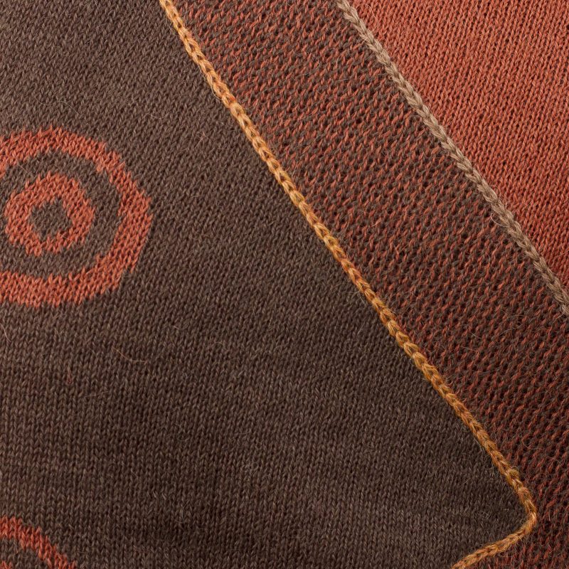 Inspired by the styles of the Andean mountains, Peruvian artisan Waldo Berrios creates this fashionable scarf. This scarf is knit from a luxuriously soft alpaca blend, which features contrasting hues of chestnut and pumpkin that create zigzags and circle patterns.
