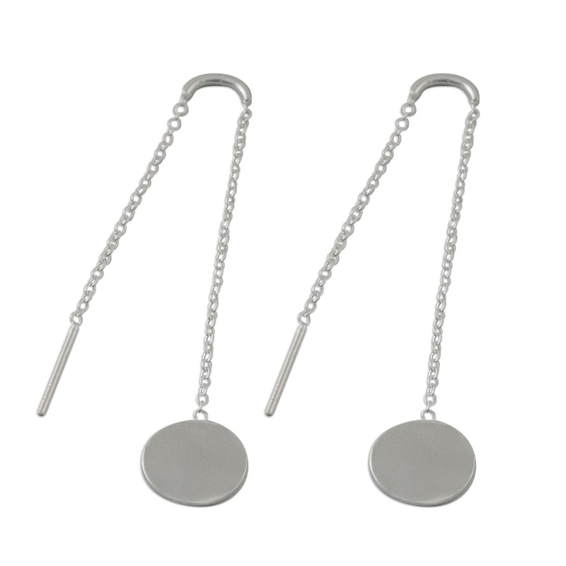 Backed by our 100% Happiness GuaranteeShaped like tiny moons, two circles of sterling silver dangle from the ears with a stellar excellence. Thai artisan Lalana designs this pair of threader earrings, which swing on petite sterling chains.