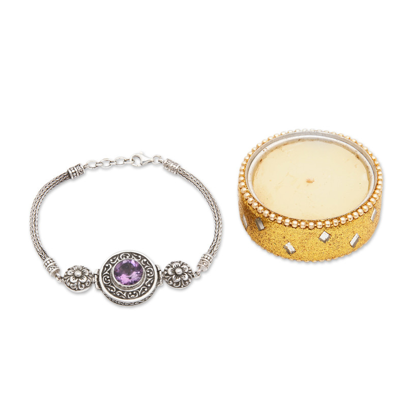 You can find our amethyst pendant bracelet 'Gong of Wisdom' by Suar Dwipayana in jewelry categories such as Balinese Traditional Silver Bracelets, Gemstone Bracelets, Birthstone Bracelets, Floral Bracelets and Traditional Bracelets. Enjoy exploring these sections for other Novica treasures.