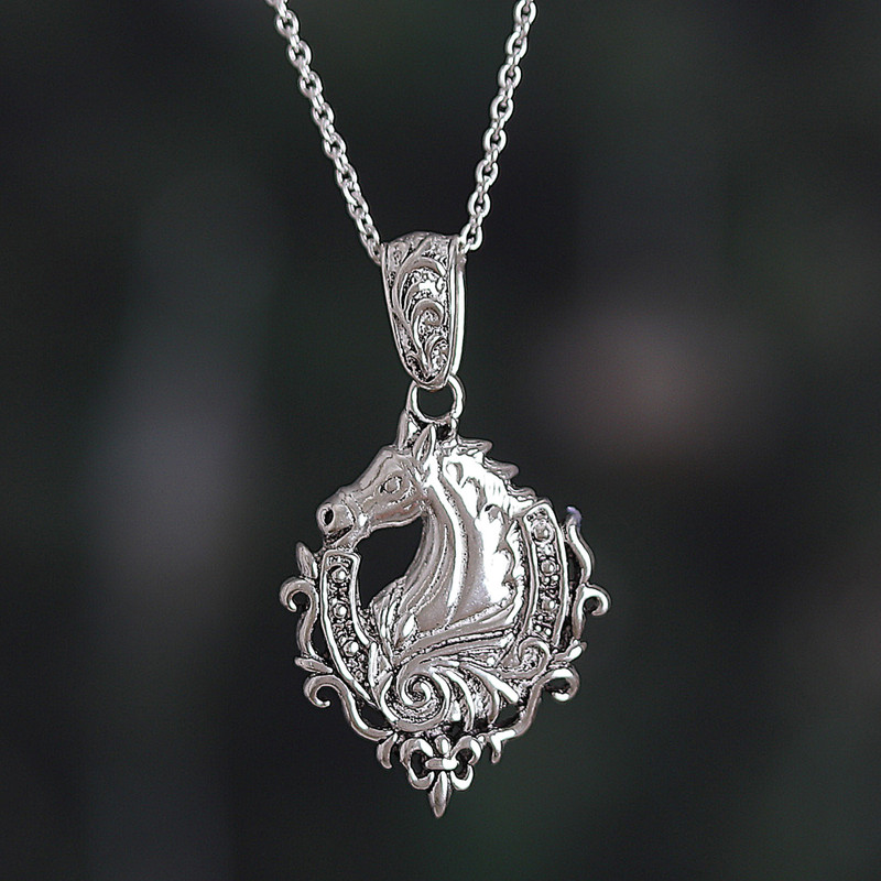 Companion of heroes and kings, the horse symbolizes bravery, elegance, and gallantry. This magnificent creature is honored by Indian designer Ajay Patil with glorious details of majestic allure, which create a sterling silver pendant necklace perfect to add regal sophistication to any ensemble.