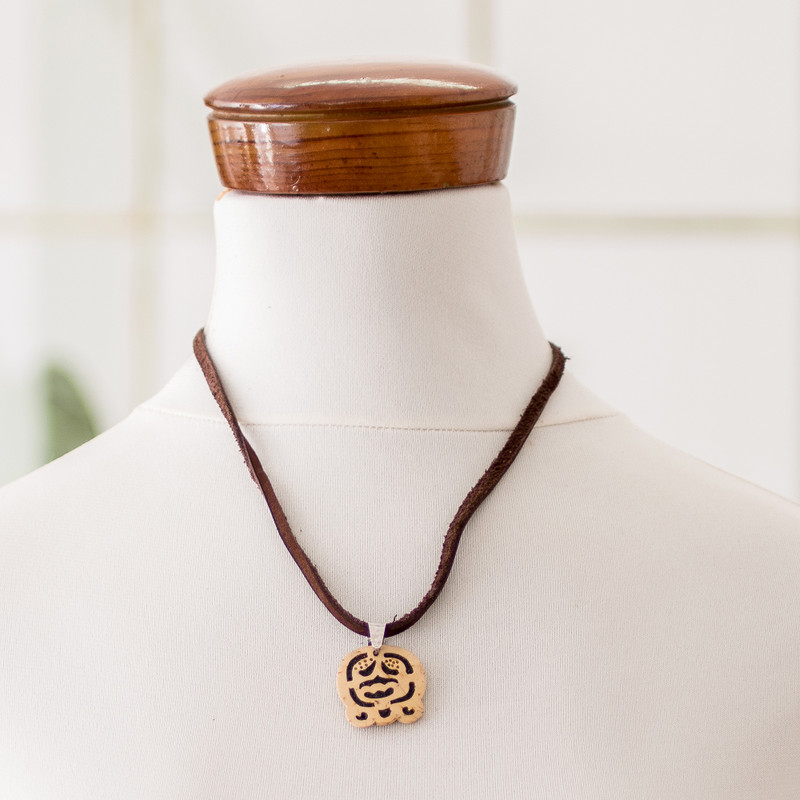 Backed by our 100% Happiness GuaranteeHand-carved from a piece of coconut shell, the image of the Ak'ab'al sign adorns this necklace from Guatemala, aimed at those blessed by the bat spirit. Proud of their heritage, Fernando and David fill the cutaway section with lava stone for an exquisite contrast, while a leather cord completes the design with comfort. The pendant is also a symbol of harmony and peace, based on the ancient Mayan doctrine.