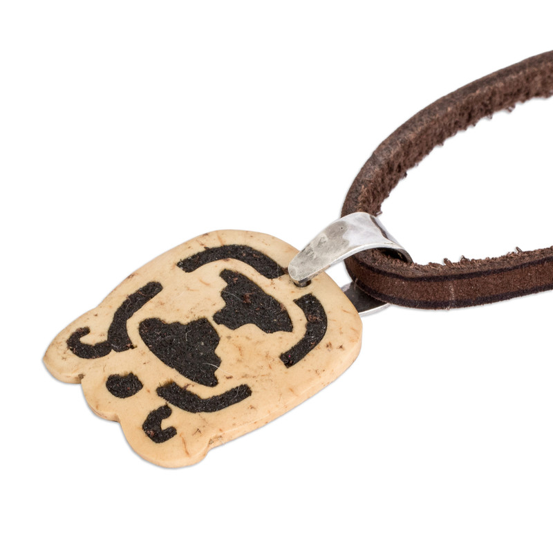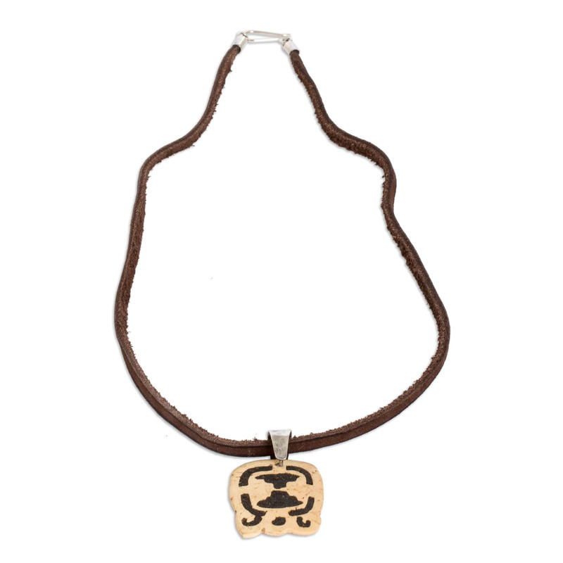 Backed by our 100% Happiness GuaranteeHand-carved from a piece of coconut shell, the image of the Tijax sign decorates this necklace from Guatemala, aimed at those blessed by the toucan and swordfish spirits. Proud of their heritage, Fernando and David fill the cutaway section with lava stone for a captivating contrast, while a leather cord completes the design with comfort. The pendant is also a symbol of spiritual liberation, based on the ancient Mayan doctrine.