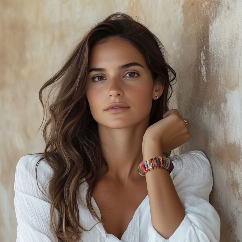 This is such a pretty bracelet! Its very comfortable and the colors are beautiful. It will complement so many outfits. Love it!