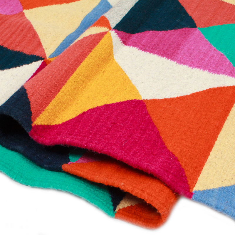 Infuse life and energy into your living space with this spectacular area rug, where stunning geometric patterns take center stage. Carefully hand-woven from naturally dyed wool, it presents a modern design and a dynamic color palette that catches the eye. Drawing inspiration from Mexico's Zapotec heritage, artisan Mario Chavez's splendid accessory is finished with hand-knotted fringed accents embellishing both ends, making this rug a fascinating addition to your decor.