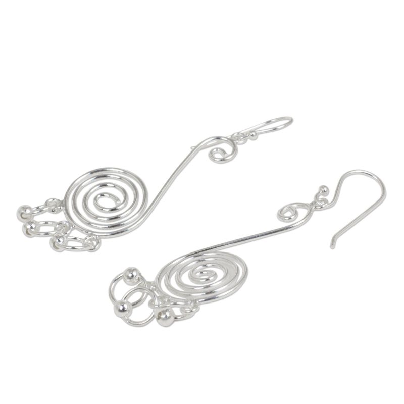 Backed by our 100% Happiness GuaranteeCaptivate attention with these hypnotic earrings, formed of polished sterling silver in sleek spiral motifs. Pichaya in Thailand presents the original design, which features silver rings and beads at the bottom that sway and catch the light.
