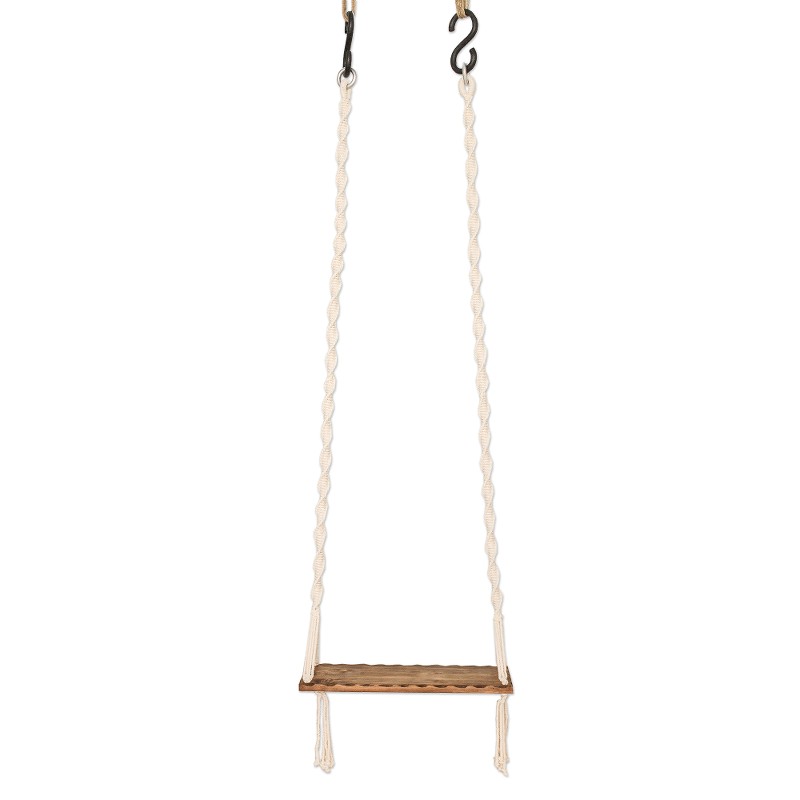 This attractive porch swing is suspended on hand-knotted undyed cotton cords in a spiral pattern that support a brown pinewood seat. Hooks let you hang it for use while tassels add to its beauty. Joelle Perret, a French woman who was raised in Costa Rica, made a career change when the pandemic began. She and her husband decided to reinvent themselves, turning her hobby of macramé into a source of livelihood.