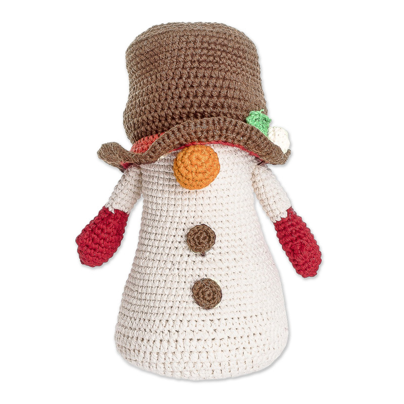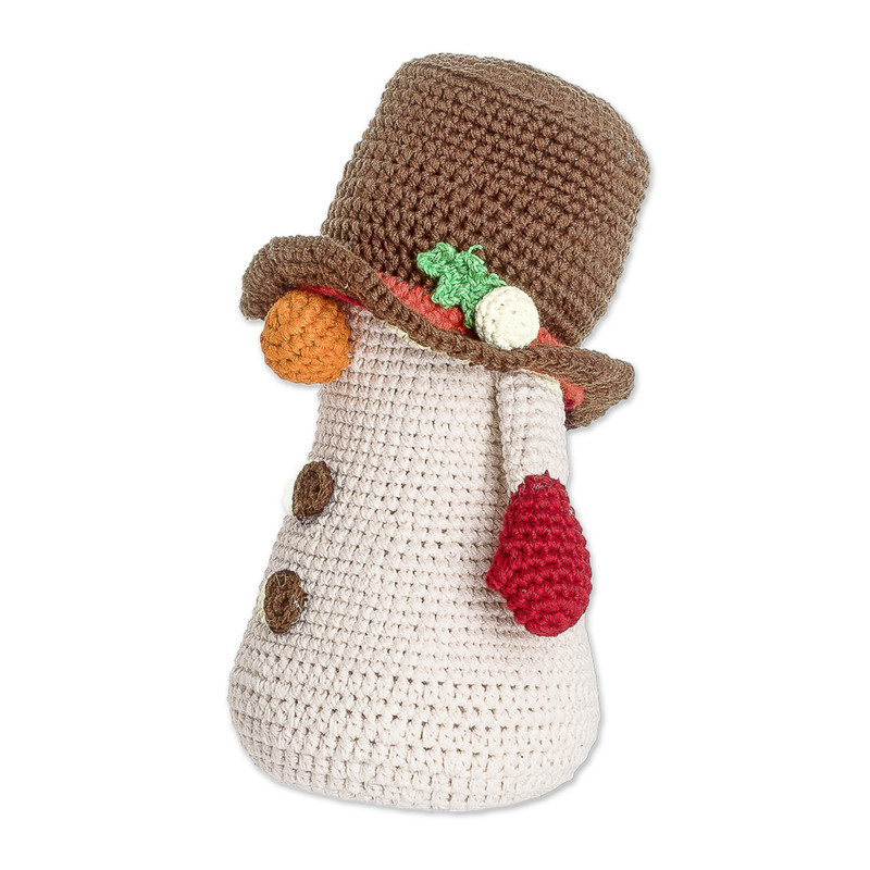 This cute snowman comes directly from Guatemala to add a tender and sweet touch to your holiday decor. Artisan Marleny Chajon crochets the doll with acrylic yarn, making a cheerful design with cute red gloves and a funny detachable hat, all in a colorful palette.