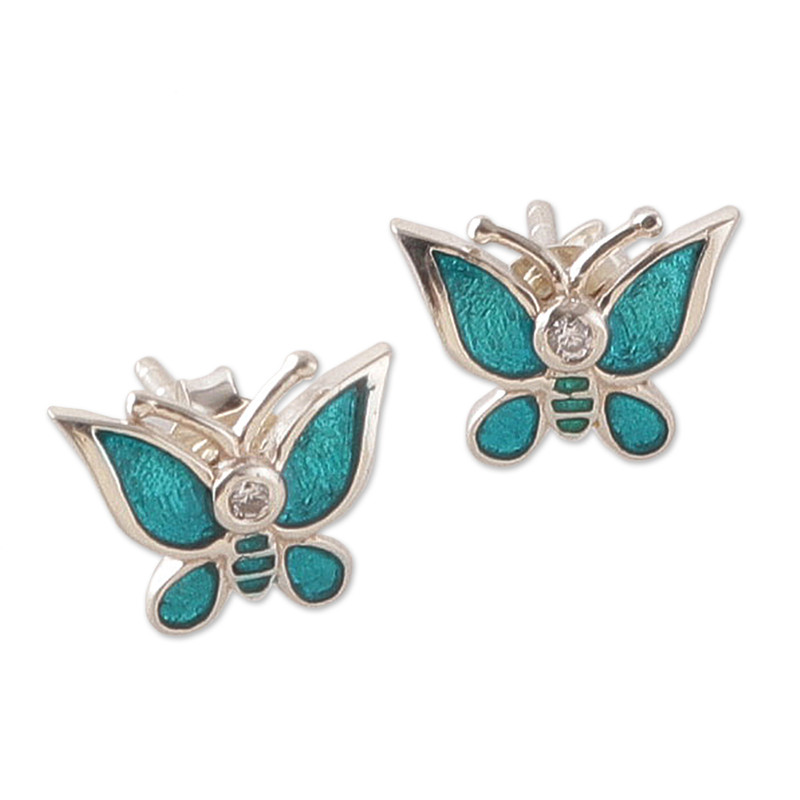 You can find our cubic zirconia stud earrings 'Butterfly Daydream' by Bhavesh in jewelry categories such as Hand Painted Earrings, Cubic Zirconia Earrings, Sterling Silver Earrings and Stud Earrings. Enjoy exploring these sections for other Novica treasures.
