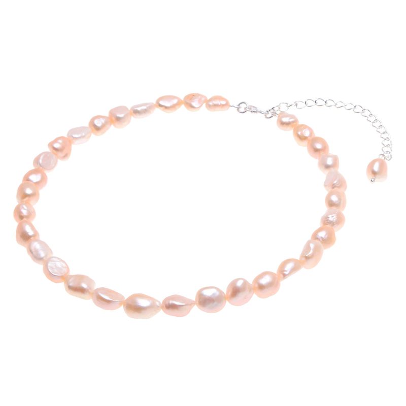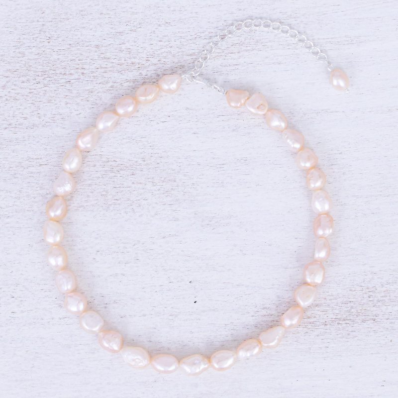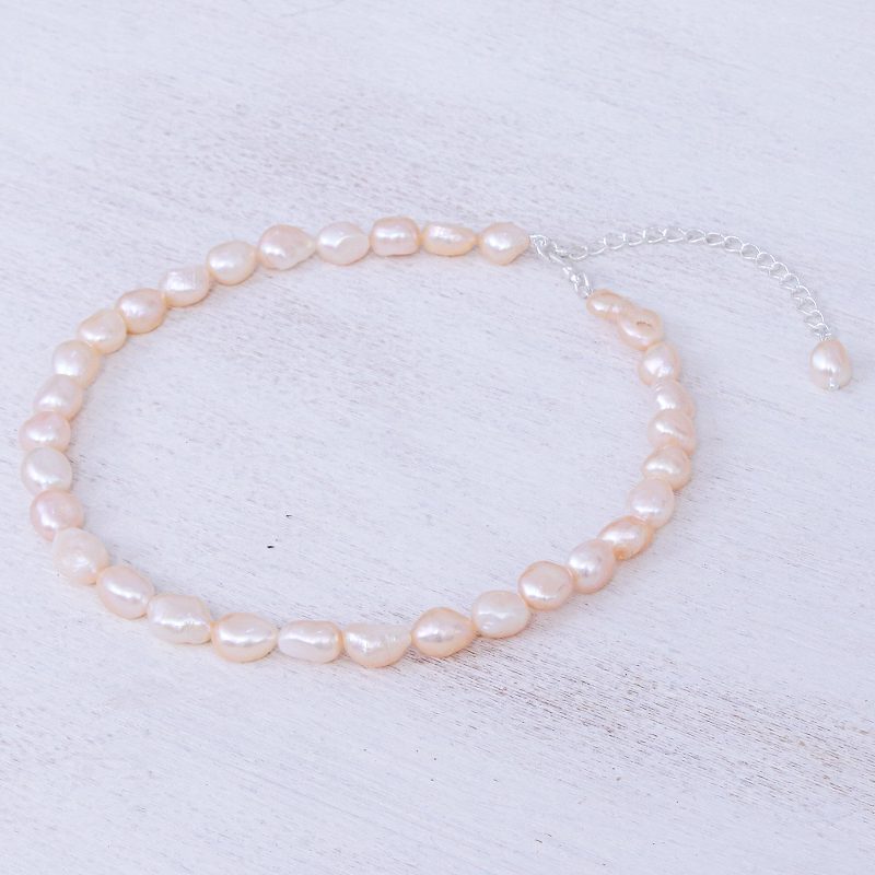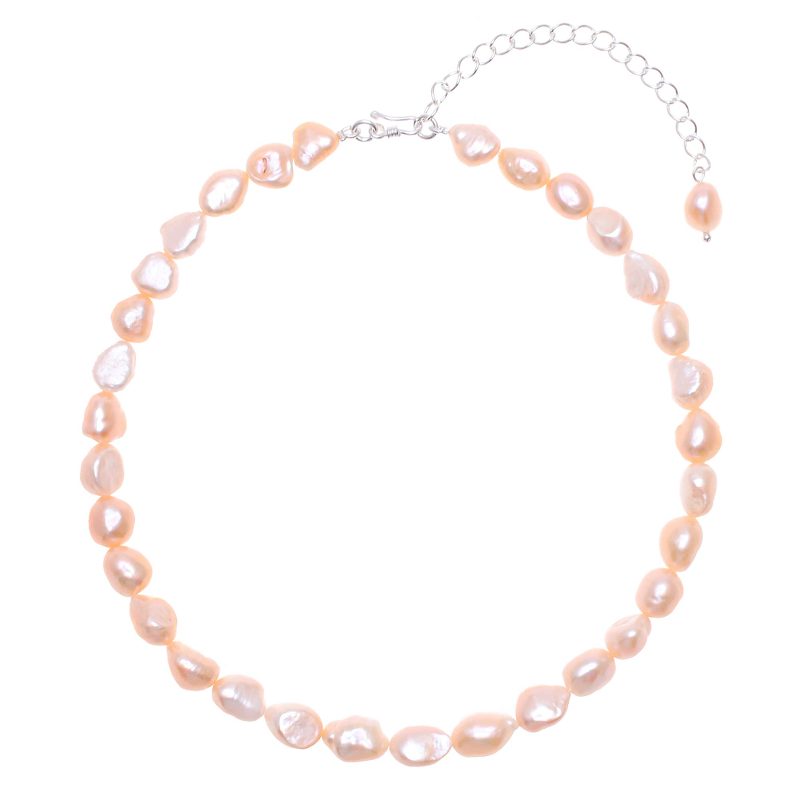 Gain the elegant mystery of a mermaid with this lovely choker designed by Thailand's Matta. The artisan hand threads a row of baroque cultured freshwater pearls in pale peach to create the necklace, while a sleek sterling silver clasp and extender chain finish the strand in style.