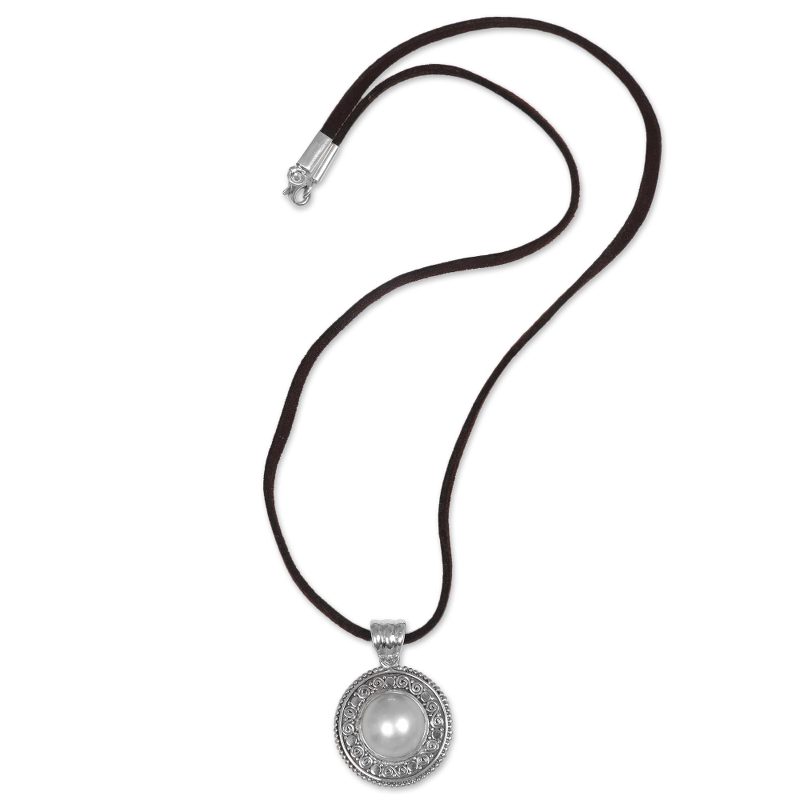 Backed by our 100% Happiness GuaranteeHanging from a leather cord, a single cultured white mabe pearl is featured in the pendant of this necklace from Indonesia. Featuring an original design by Buana, the pendant necklace is handcrafted from sterling silver by local artisans for a truly beautiful appeal.