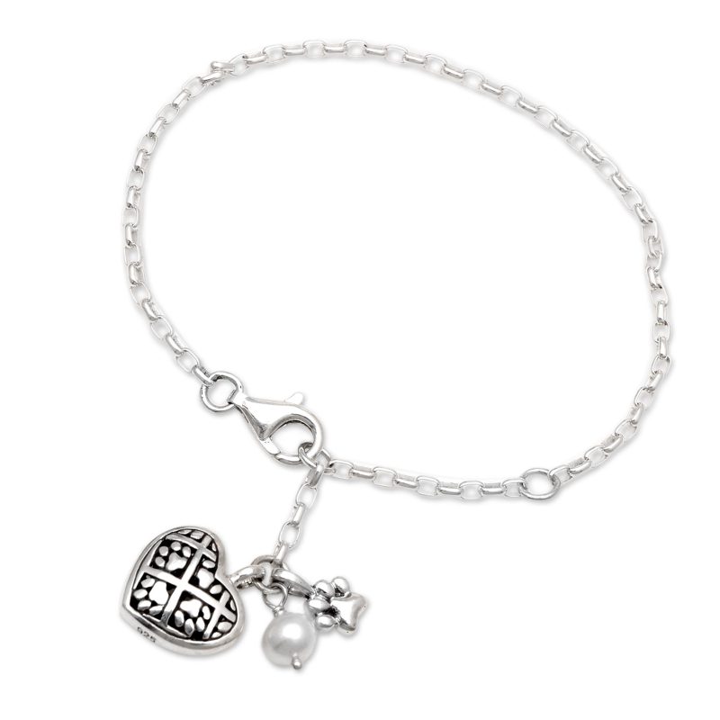 You can find our cultured pearl charm bracelet 'Heart Full of Paws' by Bali Animal Welfare Association in jewelry categories such as Heart Bracelets, PEARL Freshwater Bracelets, Sterling Silver Bracelets and Charm Bracelets. Enjoy exploring these sections for other Novica treasures.