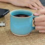 Earth and Sky, Thai Handmade Turquoise Blue and Brown Pottery Mug