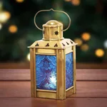 Lantern in Blue, Blue Pressed Glass and Brass Tealight Lantern