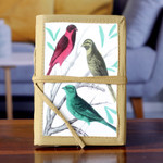 Treat your loved ones to the wonders of India with NOVICA's handpicked accessories, elegantly presented in a gift set that promises delight. Flowers blossom with ethereal grace in a shawl of sophisticated allure, exquisitely woven on a jacquard loom with authentic Banarasi silk and finished with delicate fringes on the edges. Bold paisley motifs in fuchsia, turquoise, scarlet and teal circumnavigate a gorgeous shoulder bag further embellished with leaf patterns in golden brocade, boasting a zippered closure and a fully lined interior revealing a zippered pocket. Finally, a decoupage journal with 48 pages of handmade paper features screen-printed motifs of lovely sparrows on the front and an antique postcard on the back, trimmed with olive green cotton and complete with a tie closure.