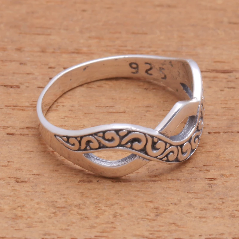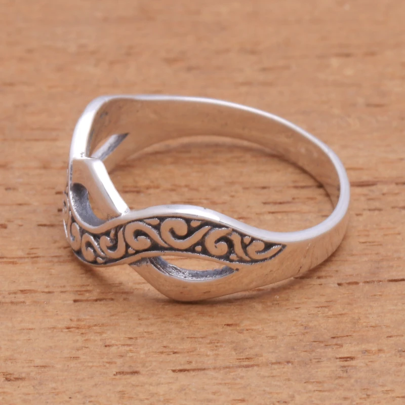 Backed by our 100% Happiness GuaranteeWaving back and forth over the finger, a high-polish band alternates with a curl-pattern band of sterling silver. Balinese artisan Wayan Lasti designs and crafts this beautiful ring.