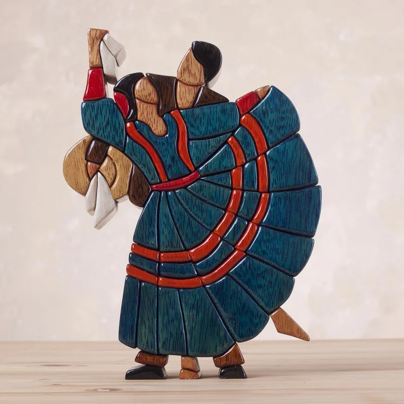 Backed by our 100% Happiness GuaranteeLithe graceful dancers perform the Marinera dance in this vivid sculpture by John Barrow. "It's part of my 'Folklore' series inspired by this beautiful country and its regional traditions," says Barrow with admiration. Originating from northern Peru, the Marinera recreates the sea of emotions surrounding flirtation, attraction and falling in love. It can be danced individually or in couples, and performers hold handkerchiefs in sign of peace. Barrow works with hand-carved segments of cedar, mahogany and ishpingo woods, which he dyes with natural pigments.