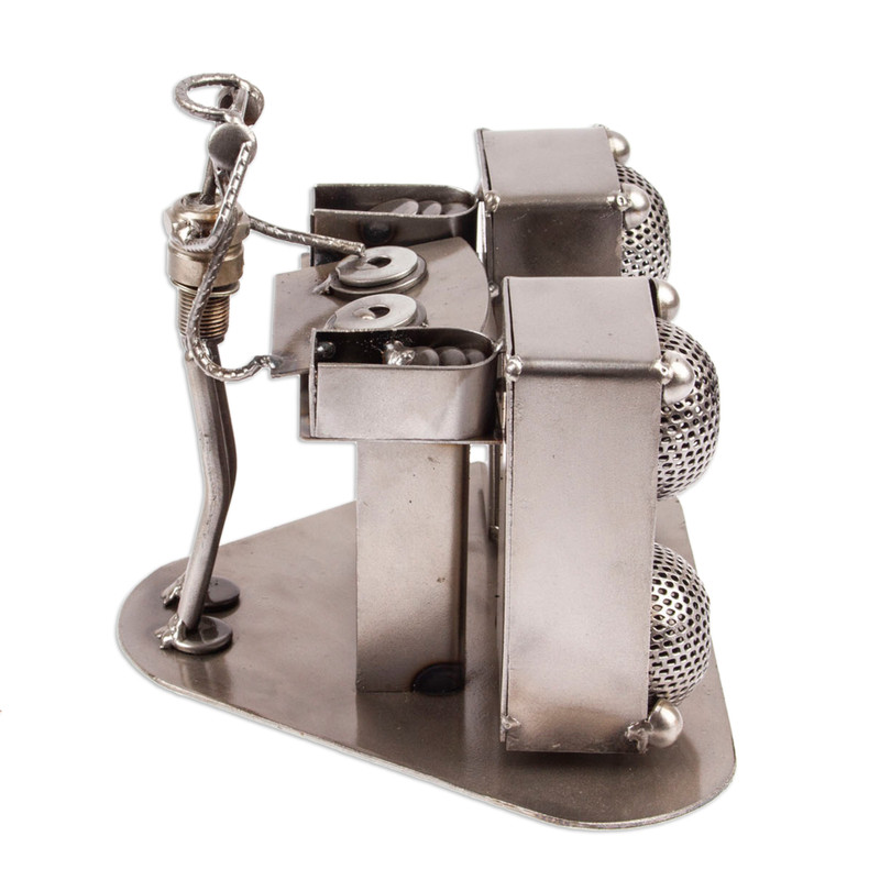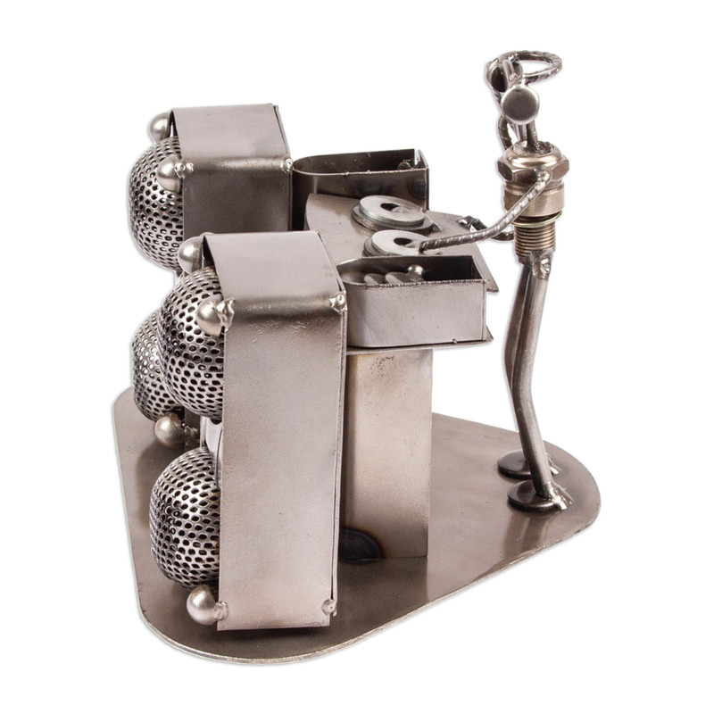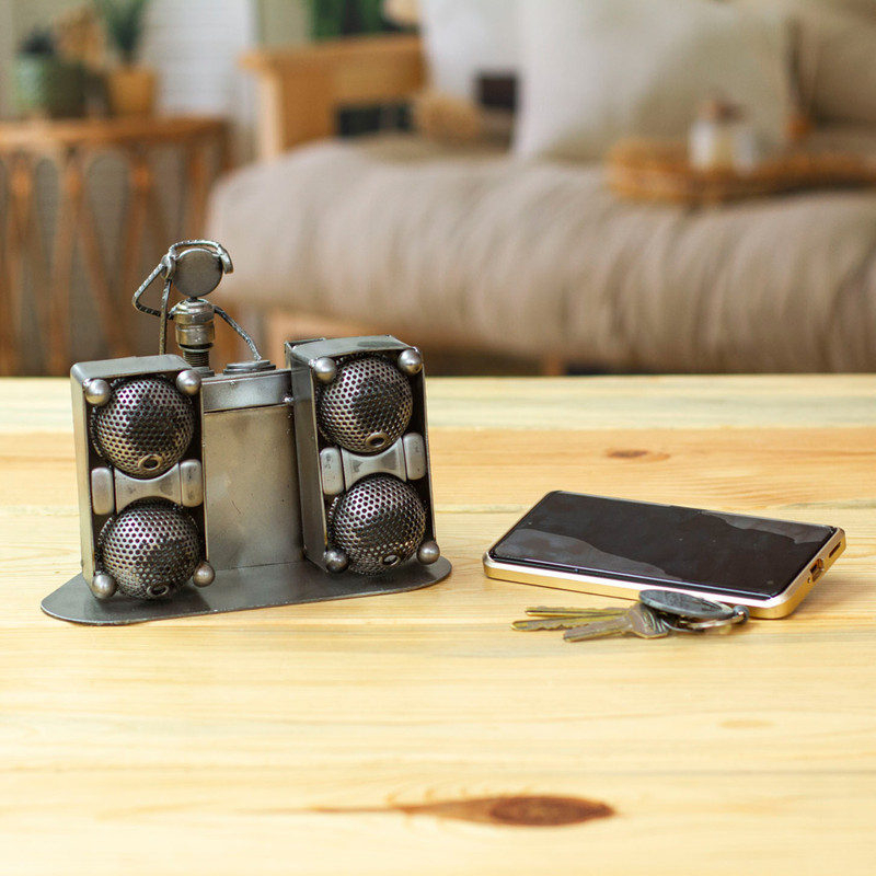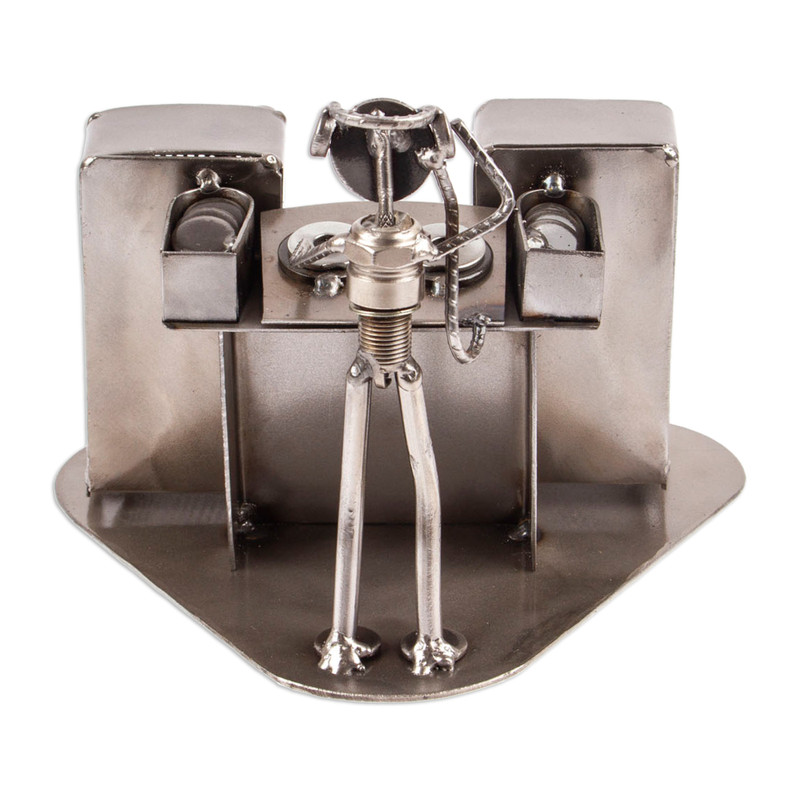 Backed by our 100% Happiness GuaranteeSpinning tunes with melodic wonder, a DJ captures the imagination of Mexico's Armando Ramirez. He transforms a sparkplug and thick wires into the DJ's body, sculpting it into a vivid pose. Speaker protectors preserve their function, continuing to pose as speakers. All other pieces from the turntable are crafted with recycled metal sheets to achieve a life-like depiction of a DJ hard at work.