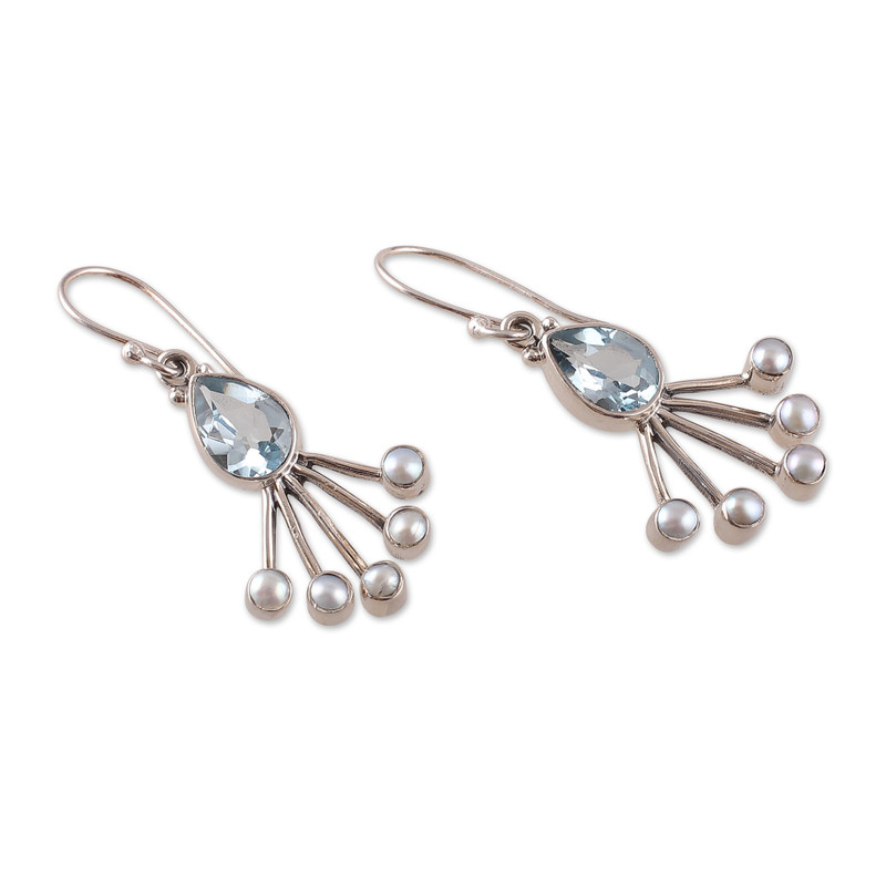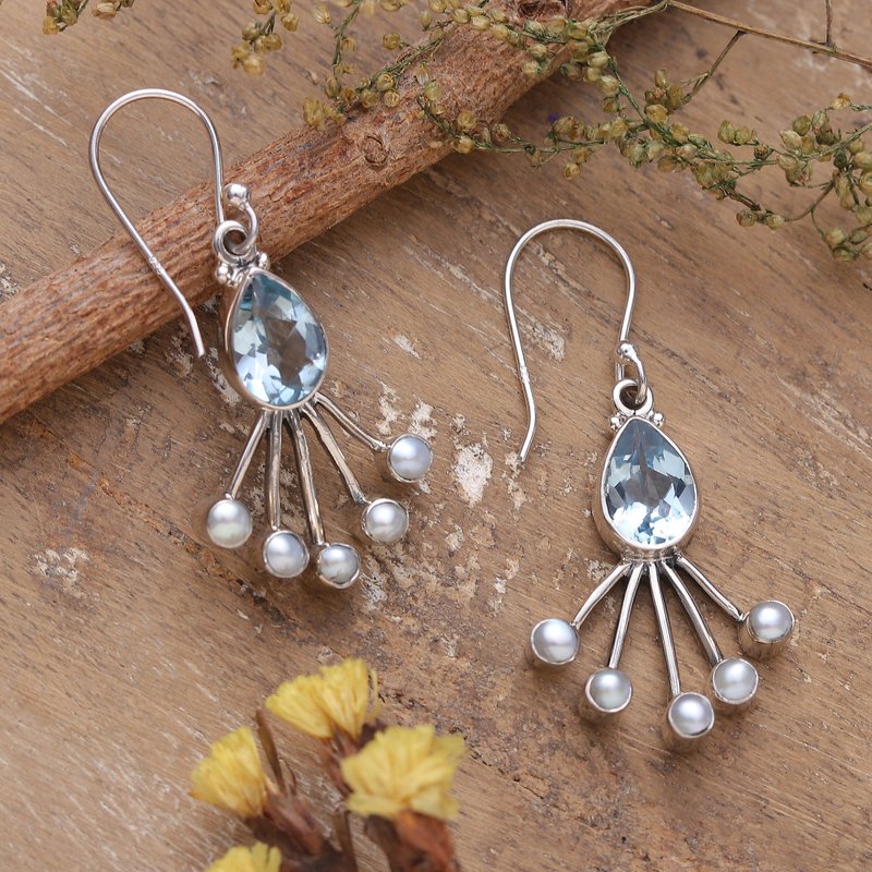 You can find our blue topaz and cultured pearl dangle earrings 'Crown of Loyalty' by Neeru Goel in jewelry categories such as Birthstone Earrings, Gemstone Earrings, Blue Topaz Earrings, Pearl Earrings and Silver Earrings. Enjoy exploring these sections for other Novica treasures.
